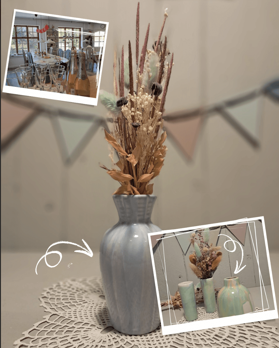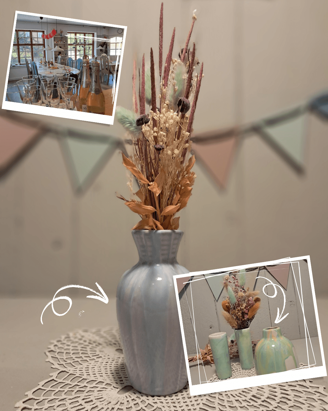 In diesem 2,5 stündigen Workshop wirst du unter Anleitung der Braderuper Blumenecke deinen eigenen wundervollen Trockenblumen-Strauß binden. ❤️ Anschließend bemalst du eine dazu passende Vase. Hier stehen dir zwei Modelle zur Auswahl. 💐🏺 Der Workshop dauert 2,5 Stunden und beinhaltet eine Vase und einen Strauß, die du mit Unterstützung selbst gestaltest. Zur Begrüßung gibt es ein Glas Sekt (mit oder ohne Alkohol). Kosten: 42 Euro